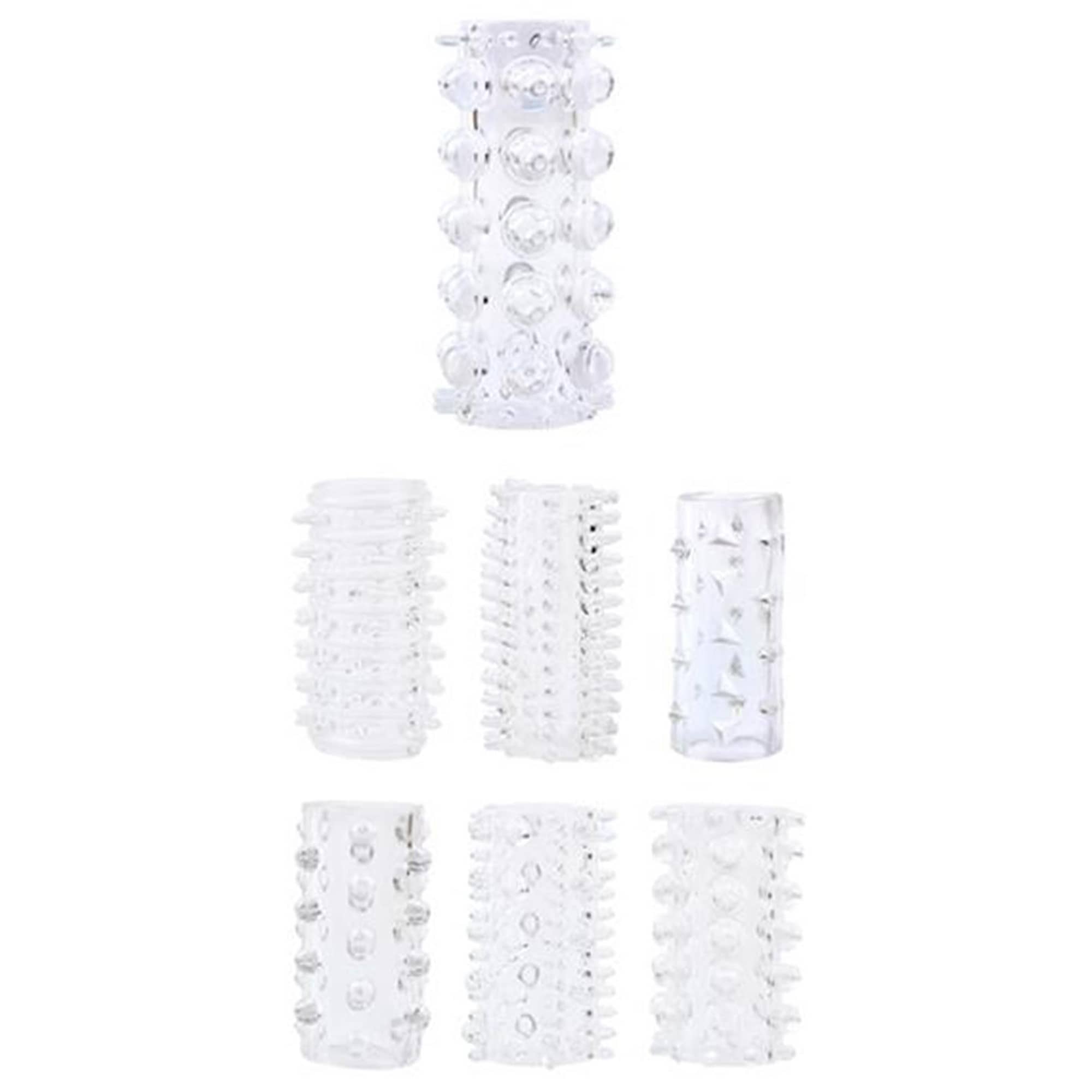 Hvad gør Penis Sleeve Kit speciel? Penis Sleeve Kits er et kit med 7 forskellige penis sleeves, der øger glæden for begge involverede parter under penetrativ sex. Hvert sleeve har et unikt mønster, der stimulerer din partner med knopper, riller og endnu m